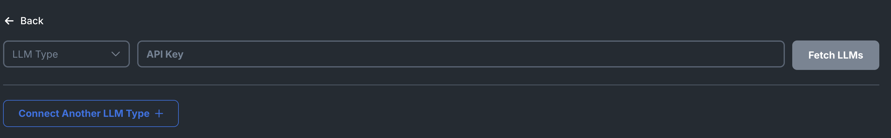 - Click Fetch LLMs to retrieve the available models (e.g., GPT-3.5 Turbo, GPT-4 Turbo Mini, etc.).