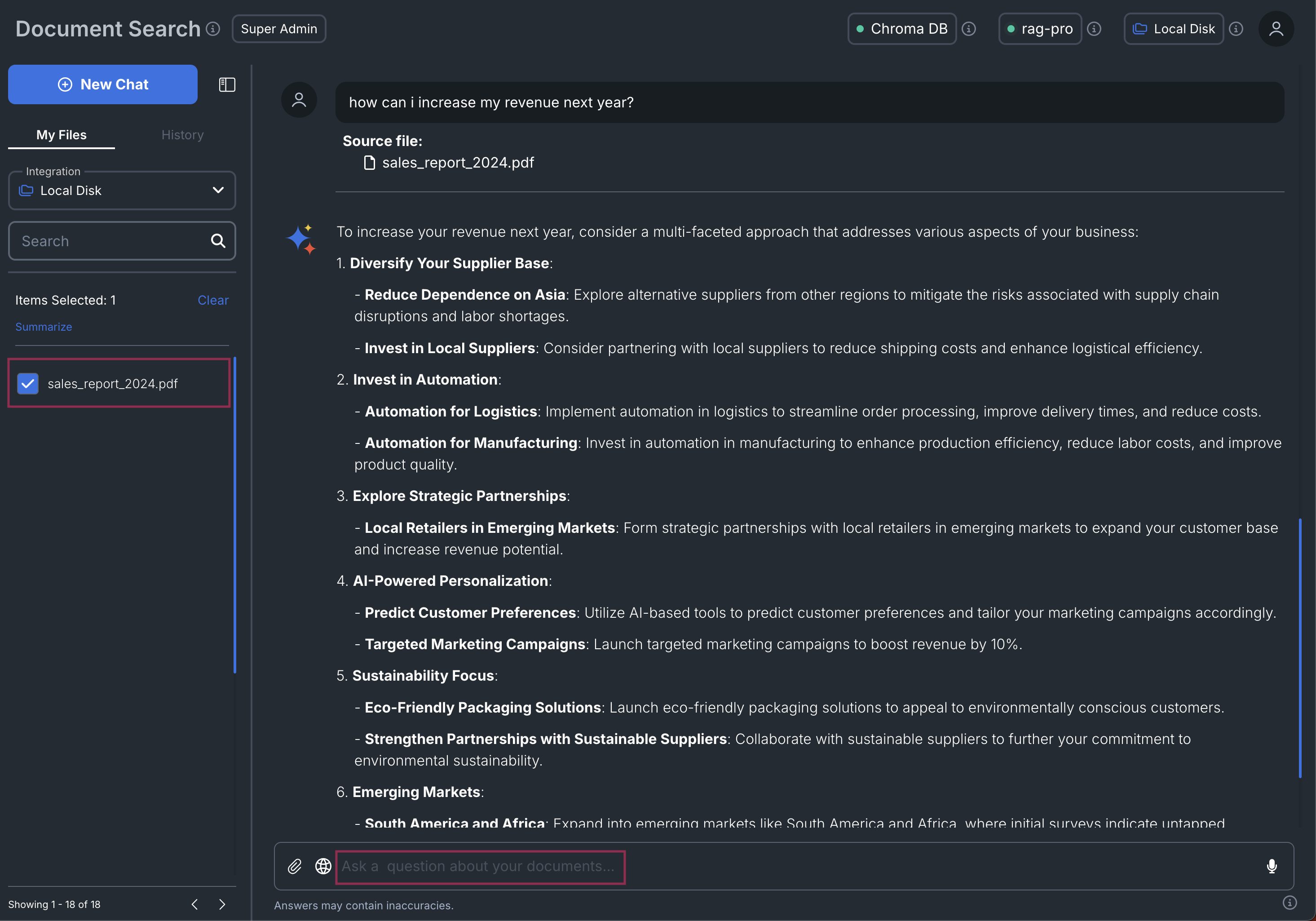 - Ask a Question - Lets you chat with the document and retrieve specific details.